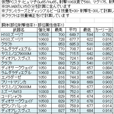 ↓ 武器火力比較 なるGoogleドキュメントにて↓
